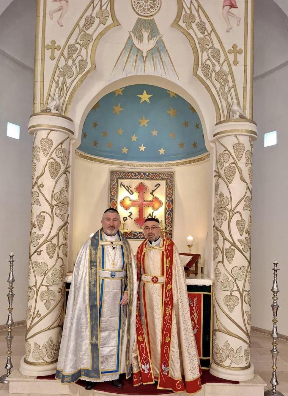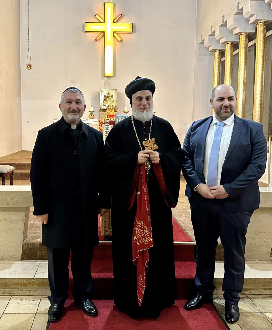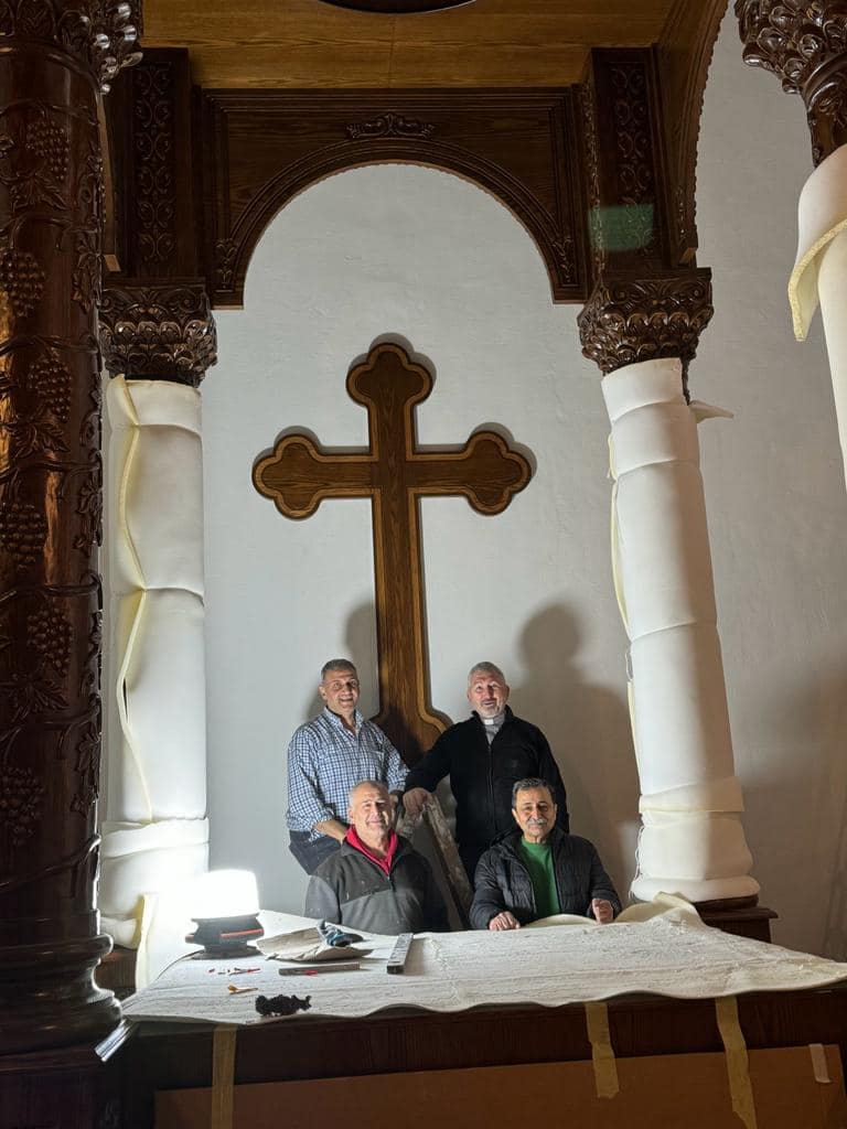 Anschließend führte die Reise nach Zahle, wo sie herzlich von Seiner Eminenz Mor Yostinos Boulos Safar, Metropolit von Zahle, empfangen wurden. Dort konnten sie sich persönlich von dem eindrucksvollen Fortschritt der Bauarbeiten am neuen Altar überzeugen.