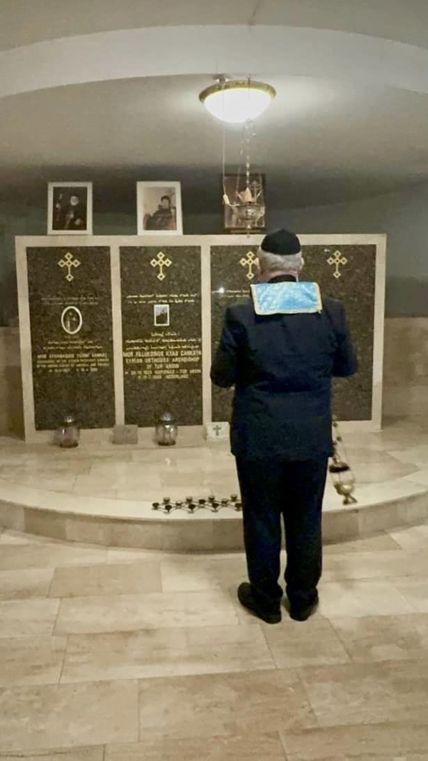 Im Anschluss besuchten wir am Sonntag das Kloster St. Ephrem der Syrer, um Sayidna Mor Polycarpus Augin Aydin zu treffen und die Gräber auf dem Klosterfriedhof zu besuchen und dort zu beten. Dort ruht auch der dreimalige Erzbischof Mor Yulius Yeshuh Cicek, der sich besonders häufig in Berlin aufhielt und maßgeblich am Aufbau unserer Gemeinde beteiligt war - Sluthe 'Aman Amin.