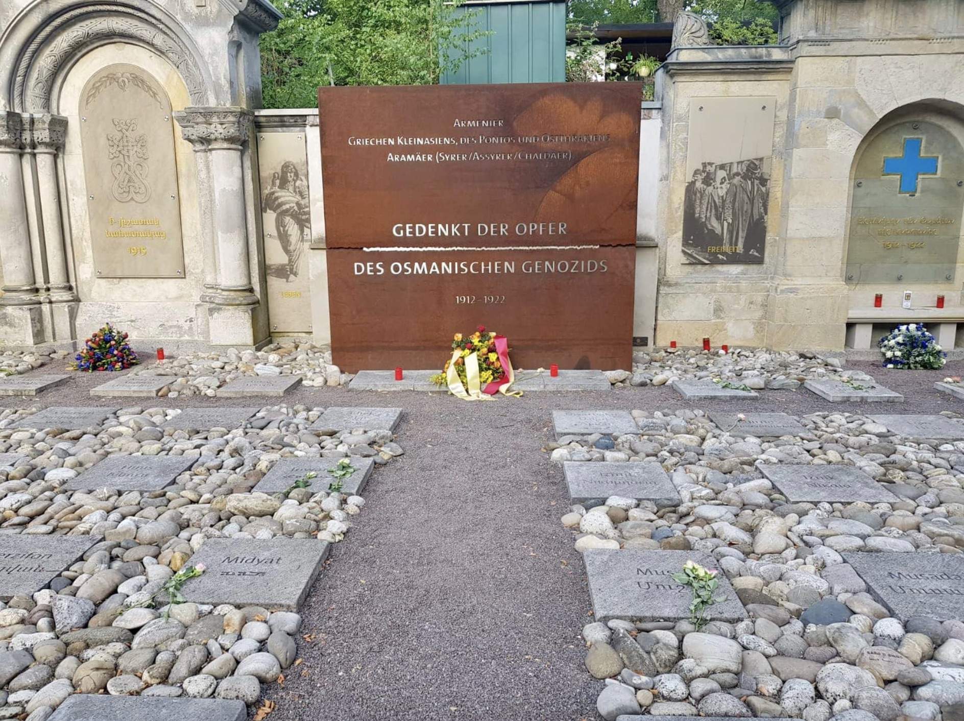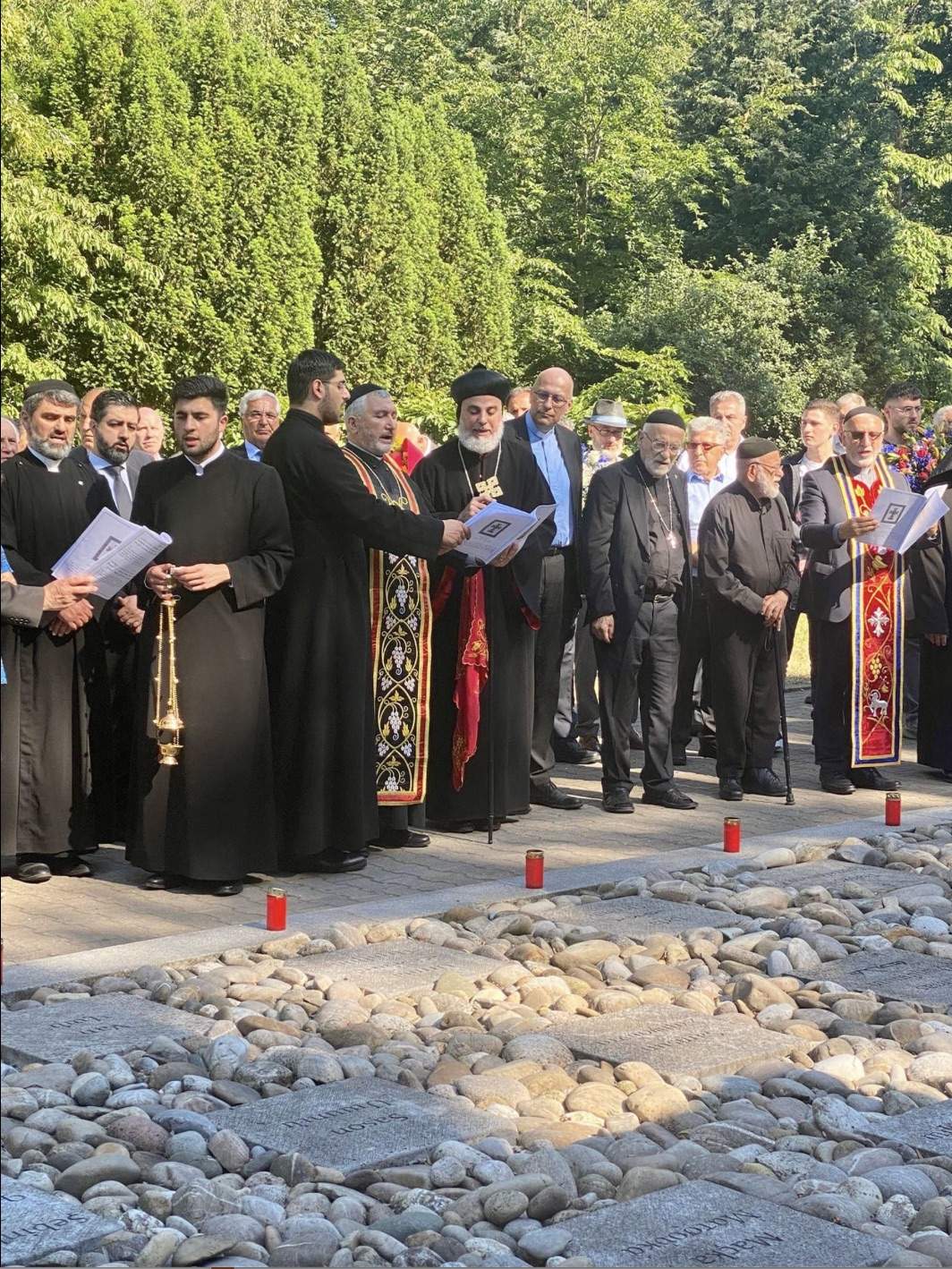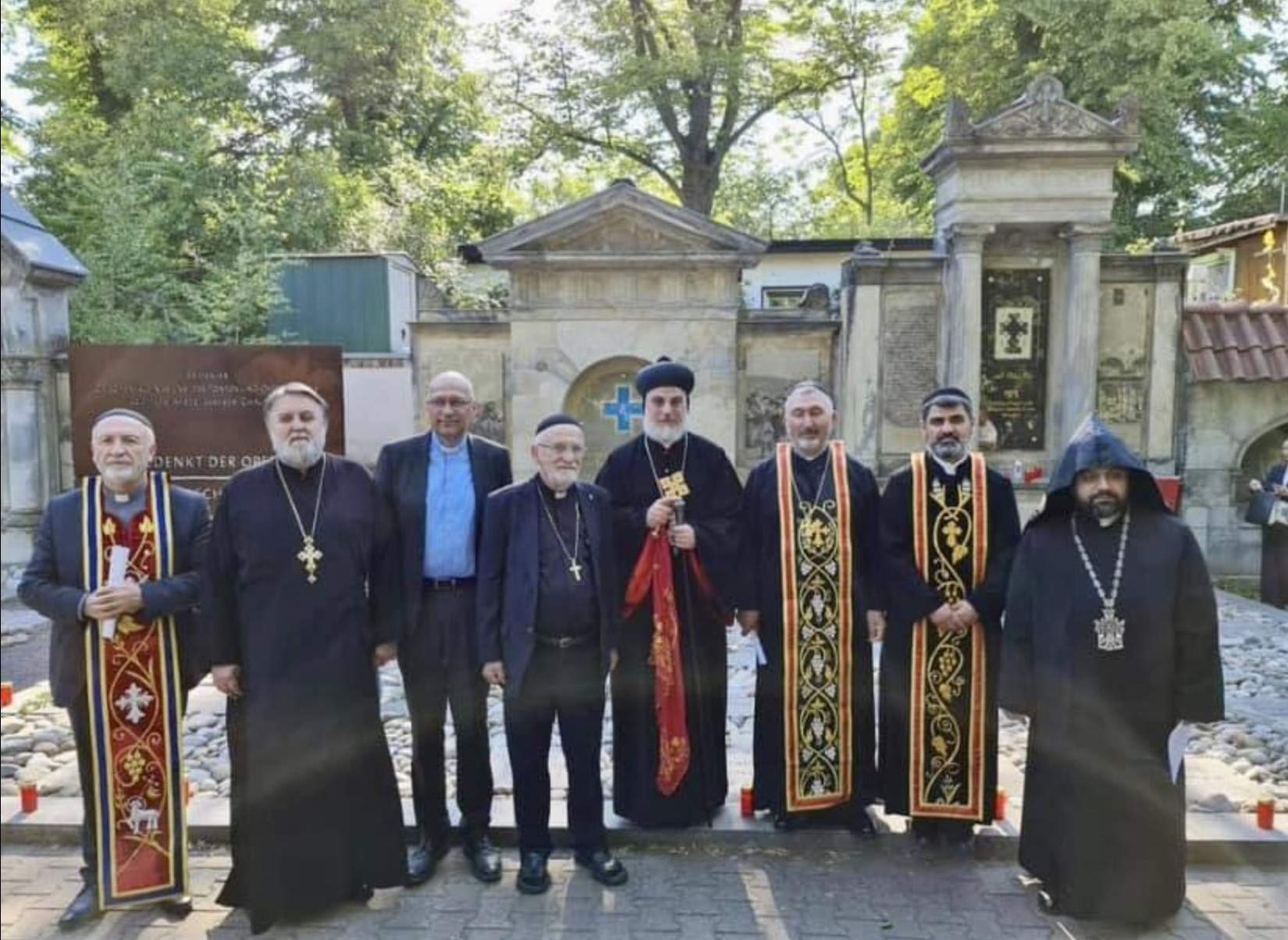 Zur Gedenkveranstaltung in diesem Jahr begrüßten wir unseren Bischof Seine Eminenz Mor Philoxenus Mattias Nayis, der hierfür nach Berlin gekommen ist. Gemeinsam mit den Priestern unserer drei Berliner Gemeinden Abuna Numan Guney, Abuna Elyas Tozman, Abuna Murat Üzel, Abuna Edvard Turan und Abuna Petrus Karaca wurde an der hierfür errichteten Ökumenischen Gedenkstätte für Genozidopfer im osmanischen Reich in Berlin des Völkermordes gedacht und ein Kranz niedergelegt. Anschließend hat Seine Eminenz Mor Philoxenus Mattias Nayis mit den drei Gemeinden und Vertretern anderer Kirchen eine Messe zum Gedenken an den Sayfo gehalten.