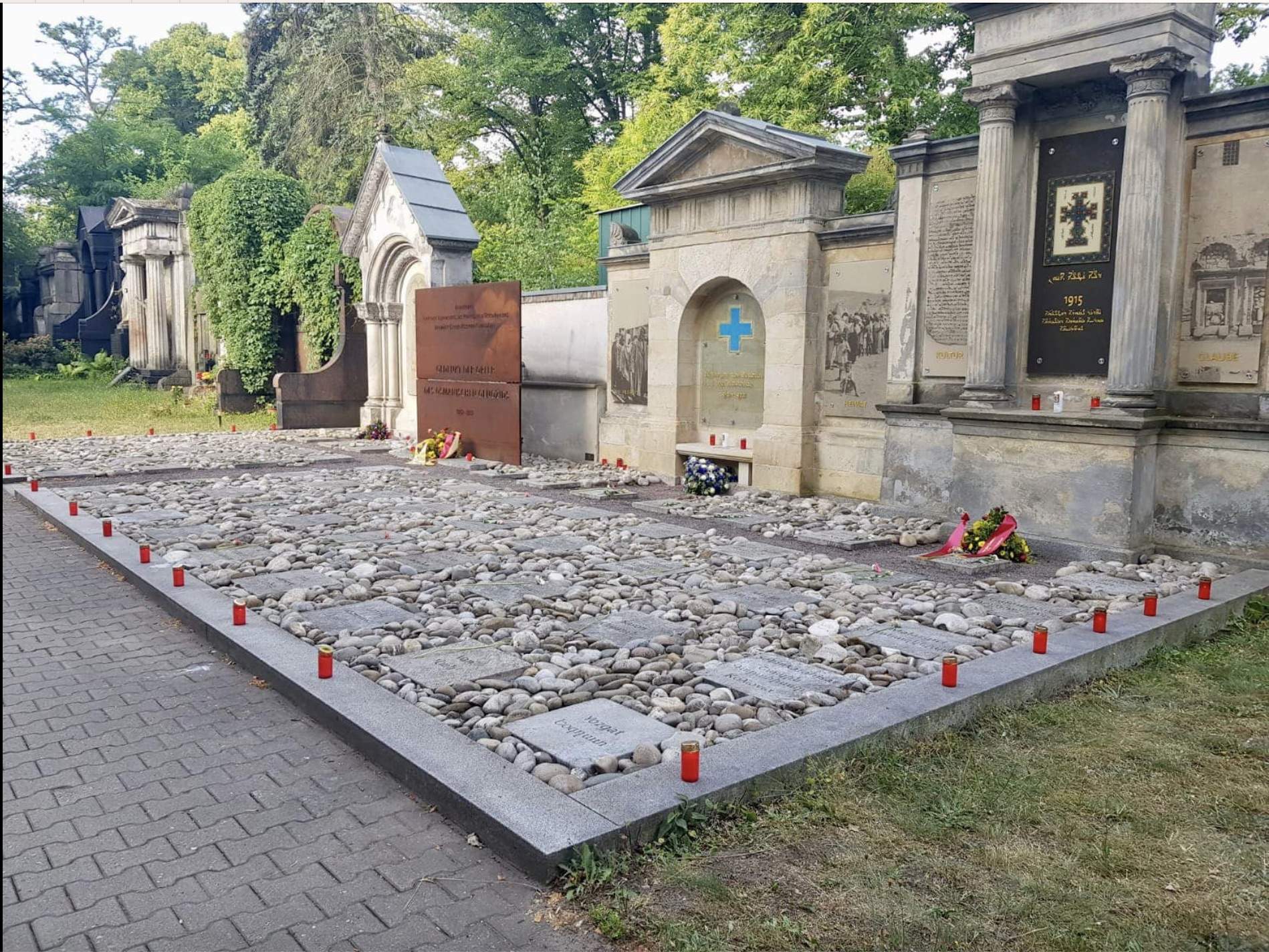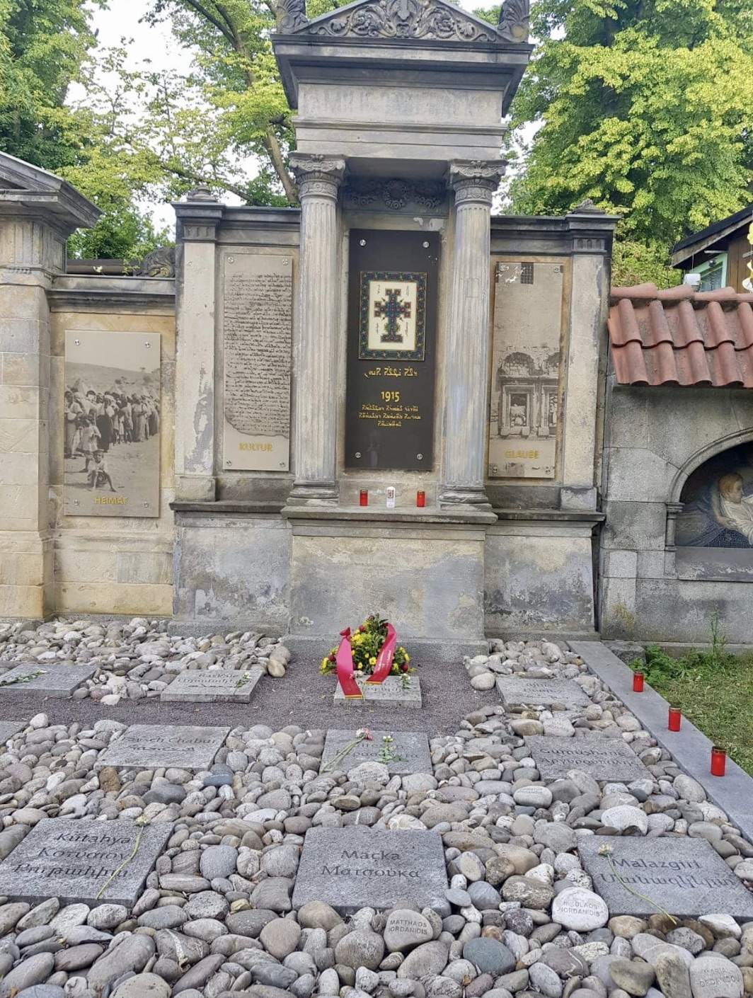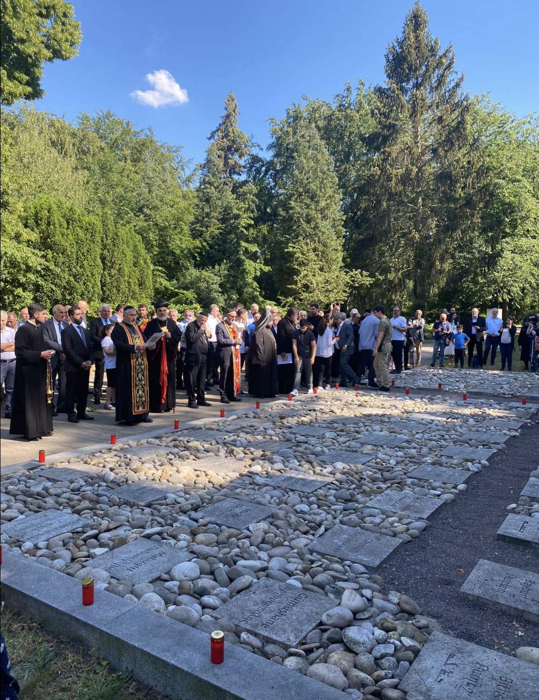 Zur Gedenkveranstaltung in diesem Jahr begrüßten wir unseren Bischof Seine Eminenz Mor Philoxenus Mattias Nayis, der hierfür nach Berlin gekommen ist. Gemeinsam mit den Priestern unserer drei Berliner Gemeinden Abuna Numan Guney, Abuna Elyas Tozman, Abuna Murat Üzel, Abuna Edvard Turan und Abuna Petrus Karaca wurde an der hierfür errichteten Ökumenischen Gedenkstätte für Genozidopfer im osmanischen Reich in Berlin des Völkermordes gedacht und ein Kranz niedergelegt. Anschließend hat Seine Eminenz Mor Philoxenus Mattias Nayis mit den drei Gemeinden und Vertretern anderer Kirchen eine Messe zum Gedenken an den Sayfo gehalten.